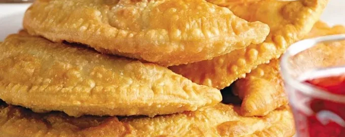 - A tésztát ossza 8 egyenlő darabra, mindegyikből sodorjon ki egy kb. 2-3 mm magas réteget. Helyezzünk egy evőkanálnyi tölteléket a tésztára, a felét lapítsuk el. Fedjük be a másik felével, és illesszük össze a széleket. Süssük ki a chebureket egy serpenyőben két-három csésze olajon, folyamatosan adagolva az olajat. A kész finomságot papírtörlőre helyezzük, hogy a felesleges zsiradékot eltávolítsuk, majd tálaljuk.