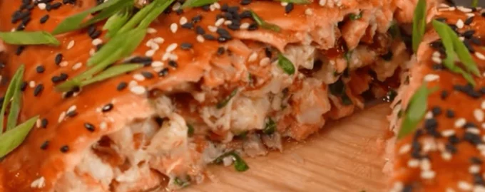 Ez a recept egy olyan étel, amely a zsengeség és az intenzív ízek egyensúlyával hódít. Lédús lazac, illatos töltelék garnélarákból és spenótból, sűrű suluguni és fényes mázú teriyaki szósz – ez az étel szó szerint elolvad a szánkban. Ráadásul kevesebb mint fél óra alatt elkészül.